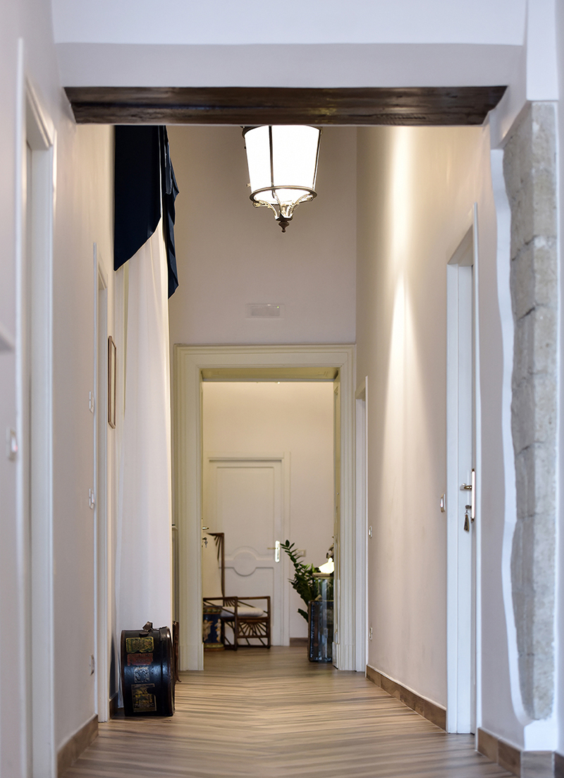 La Struttura è ospitata in un palazzo di fine 800’. E' accogliente e sapientemente arredata secondo uno stile moderno, arricchito da morbide contaminazioni classiche, come nel caso dei lampadari di cristallo di Murano o della grande lanterna del settecento; o delle vecchie valigie e cappelliere che abilmente collocate diventano simbolo e memoria di una antica bellezza, svelandoci al contempo tutto il fascino dei viaggiatori di altri tempi (collezione privata).